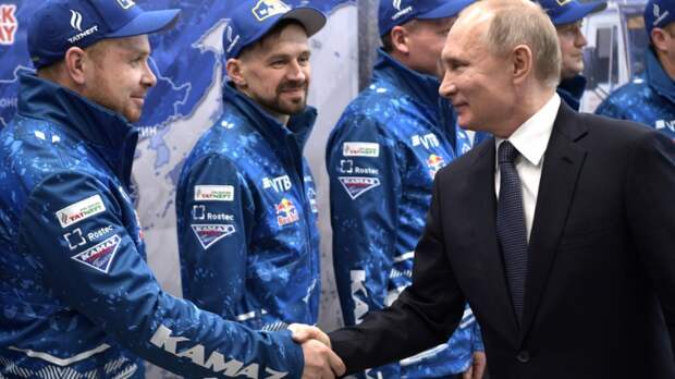 Хочу всех вас поздравить 16-я победа. Многие, вы знаете, следили за этой гонкой в стране, да и не только в стране. Поскольку вы безусловные лидеры в этой части программы, то любители автоспорта во всём мире за этим следили внимательно. Сбой нас всех тоже заставил поволноваться, когда один экипаж был снят. Не думаю, что это было справедливое решение. Скорее всего, решение связано с тем, чтобы одного из лидеров просто снять с пробега. Но у ваших конкурентов ещё будет возможность отыграться, у нас Шёлковый путь впереди. Поэтому надо всегда быть в форме. Спасибо вам большое за эту победу. И новых успехов, - сказал Владимир Владимирович.