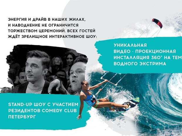 Кроме того, на премии ожидается стенд-ап-шоу от резидентов петербургского Comedy Club, видеоинсталляция на тему водного экстрима, баскетбольный фристайл, светодиодное неоновое шоу, концерт рок-групп Hut и Gentle Mess, а также ночной DJ-set.